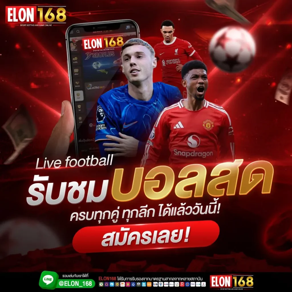 elon168 เปิดให้แทงบอลครบทุกลีกทั่วโลก พรีเมียร์ลีก, ลาลีกา, บุนเดสลีกา, กัลโช่ เซเรีย อา, ลีกเอิง รวมถึงบอลไทยลีกและการแข่งขันระดับโลก